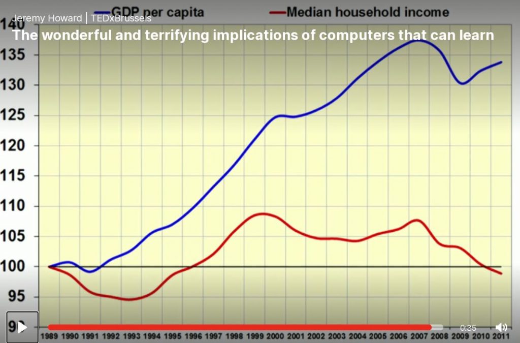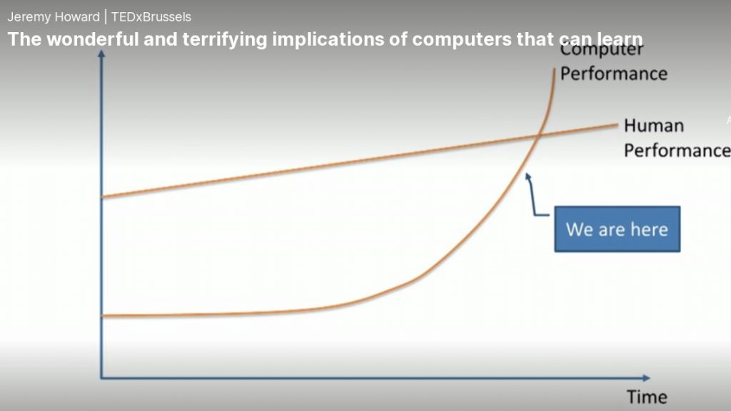 A finales de 2014, Howard ofreció una charla TEDTalk que a fecha de hoy suma casi 2.6 millones de visitas sobre las posibilidades e implicaciones del deep learning. Aunque la tecnología evoluciona de manera vertiginosa, sí se mantienen aún pertinentes algunos de los mensajes que transmite en dicha presentación: